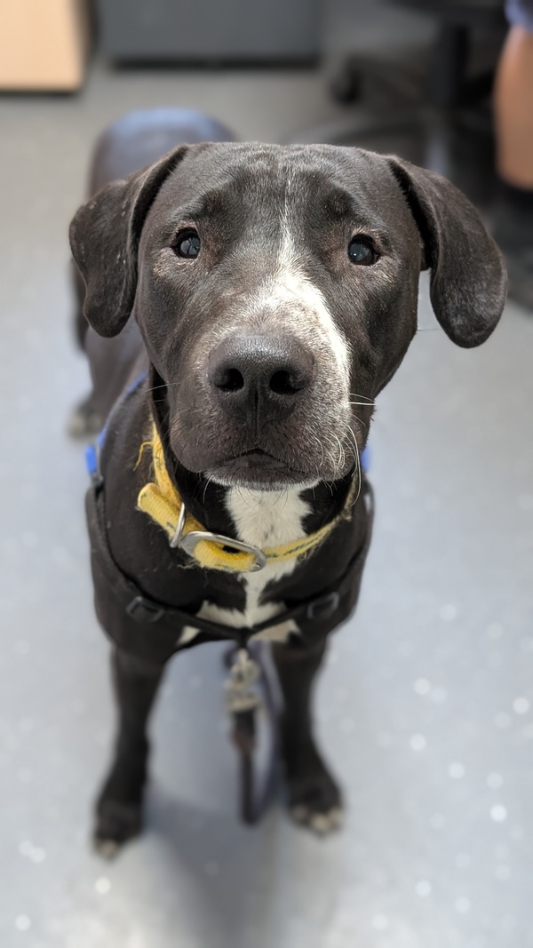He's a smart pup who already knows "sit" and is very food-motivated, which makes training fun! However, he's still working on his manners and impulse control-he can get a little overexcited and snatchy with treats. Enrichment activities and puzzle feeders will be great tools to keep his mind busy and help him learn polite behaviors.
