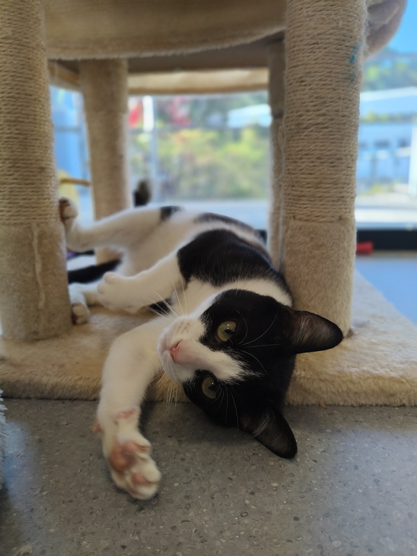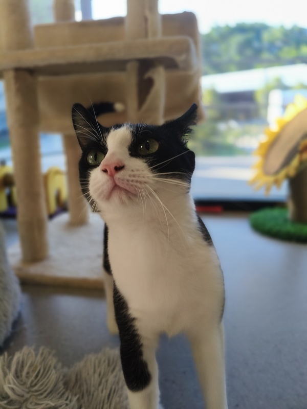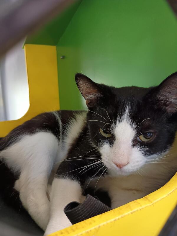 Hi, I'm Zeus, a young cat with a heart full of love. I might be shy at first, but give me a little time, and I'll show you how loyal and funny I can be. I love solving puzzles, especially if they lead to treats! My days are filled with quiet observations and gentle play. I dream of a home where I can share my affection and quirky humor. If you're looking for a smart companion who will always be there to cheer you up, I'm your cat. Let's make each other's life a bit brighter!