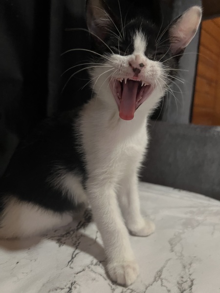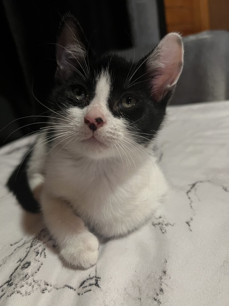 Just like his namesake from The Land Before Time, Petrie started out very fearful, hiding away and unsure of the world. He's the second most cautious of his herd, taking his time to trust-but now that he's found his wings, he's become an attention seeker who loves pats, purrs his heart out, and makes biscuits like a pro!