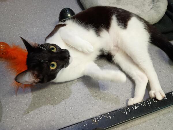 Meet Lola, a delightful young cat waiting for her forever home. Lola's personality is a vibrant mix of sweetness and curiosity. Her gentle nature is complemented by a playful and energetic spirit, and she's always ready for a cuddle or a game. Lola is also incredibly brave, facing new situations with a funny and fearless attitude. If you're looking for a loving and lively friend, Lola is the ideal choice to bring joy and laughter into your home.