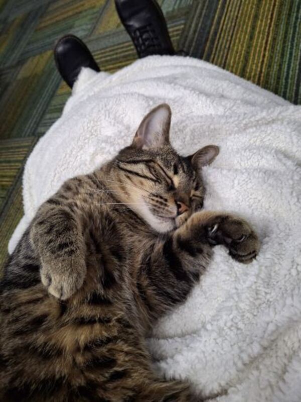 Leo knows the importance of self-care at work, always being sure to take a break when he needs it and reaching out for support (read: under chin scratches) when he's having a tough day."