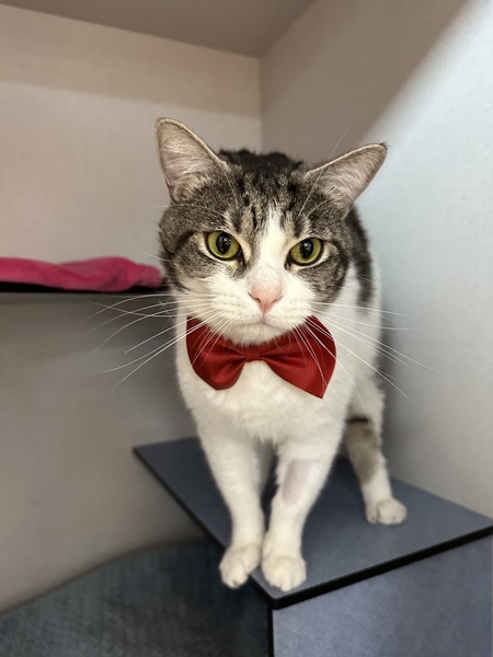 Despite being very overwhelmed upon arriving at the shelter, Bug has made wonderful progress. Thanks to patient staff and volunteers, he now warms up to gentle touch, leans in for affection and purrs loudly.