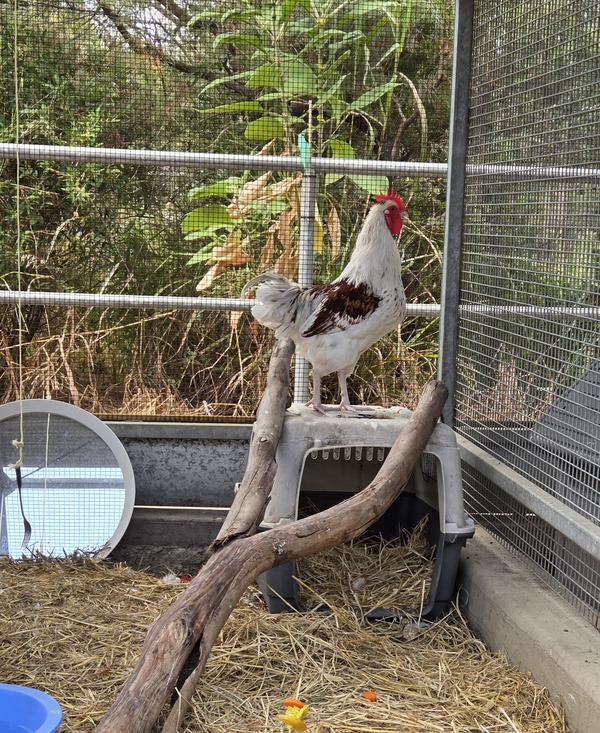 Meet Brucey, a young Sussex Rooster! Although we cannot fully confirm whether he is male, we are leaning toward it :) He is quite a nice boy and not too noisy!