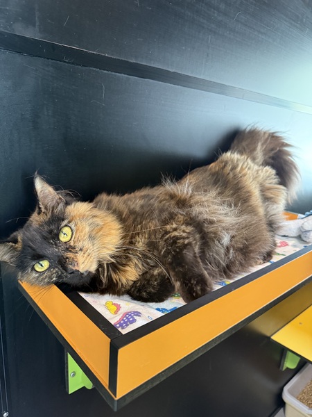 She would be happiest in a home with older, sensible children (teens and up) who understand that she needs her space at times. Sally enjoys observing her surroundings and would benefit from safe outdoor access, such as a catio or secure enclosure, where she can relax and explore without free-roaming.