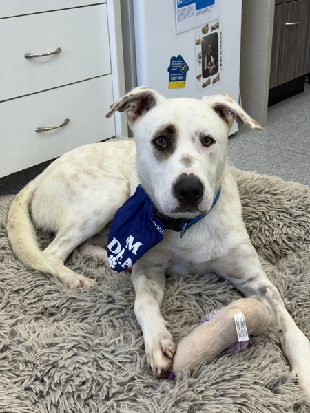 Cookie is a goofy, cheeky boy who loves being with his humans and spending quality time together. He is deaf and will need continued training to help him learn his manners, so he'll do best with a family ready to support him and work on these skills.