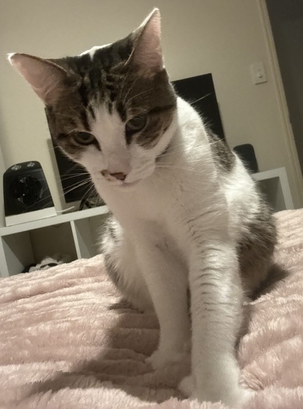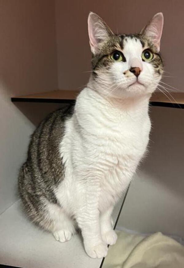 When she first arrived in care, Lucy was very overwhelmed, but she is slowly coming out of her shell. With gentle attention, she quickly softens, leaning in, rolling onto her side for pats. She loves cheek and neck scratches and responds beautifully to kind, calm handling.