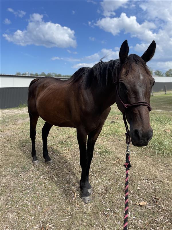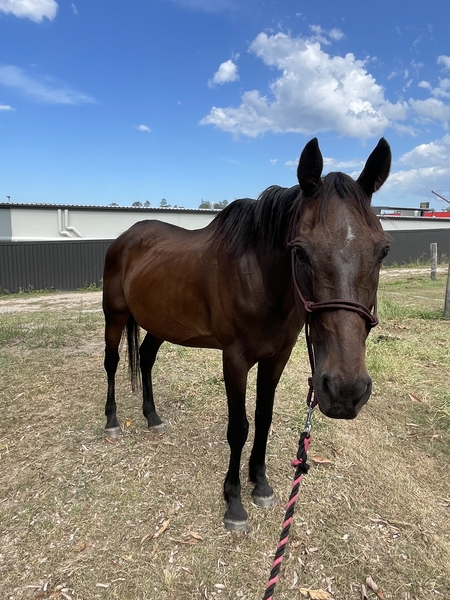 With his athletic Thoroughbred build, striking looks, and willing nature, Bundy is a pleasure to handle. He's great for the farrier, walks straight onto the float, and is calm to wash.