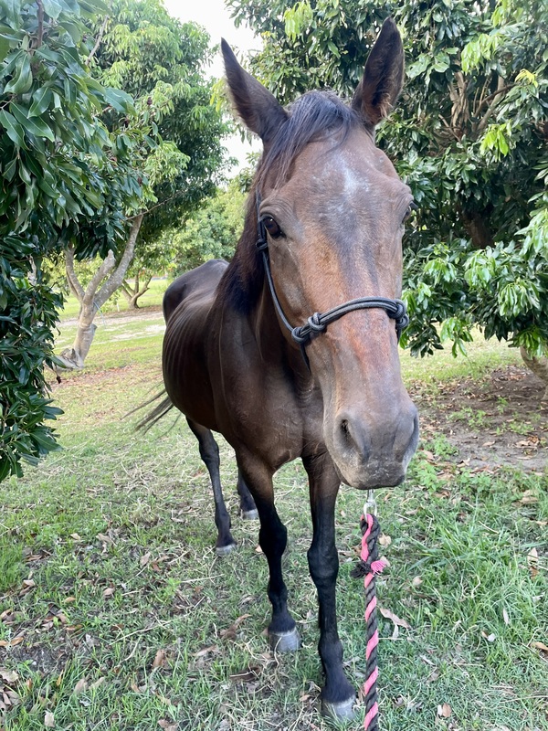 Don't let his age fool you - this lovely old gentleman still has plenty of personality, heart, and charm. Bundy is incredibly people‑oriented and thrives on attention. He loves grooming sessions, enjoys being involved in whatever you're doing, and will happily shadow you around the paddock. He's been wonderful with his foster carer's dogs, chickens, and pony, and has shown no grumpy or reactive behaviour.