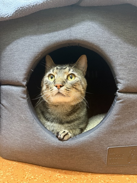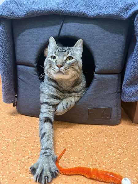 Introducing Eeyore! This lovely five year old male kitty came to us via our ambulance team. Eeyore had been sadly caught in a trap and had sustained some wounds, but was fairly quickly treated by our medical team. Understandably he was a little timid and flighty on first arrival and still has some touch avoidance around his face. Nevertheless, Eeyore leans in for affection and will solicit affection in turn. While he's really come out of his shell, he'll still hide away in a secure spot during the busier times of the day at the Centre. So, Eeyore will need to be started in a small launch room when he first arrives home. Being a food lover is a sure way to his heart so that is a good strategy for building his confidence and connection. We recommend scratch posts/cat trees and hide places like cardboard boxes and cat igloos for him, as well as high and low places to investigate. An understanding and patient adopter is Eeyore's ideal and will be rewarded in the long run as this little guy is a keeper. Older children who understand cat body language rather than littlies is recommended. While Eeyore has been untested with other cats, he does not seem to be phased by other felines around him. And he may do okay with a calm social dog as long as the interactions are monitored. With all that said, Eeyore would make a fine feline friend for a loving family.