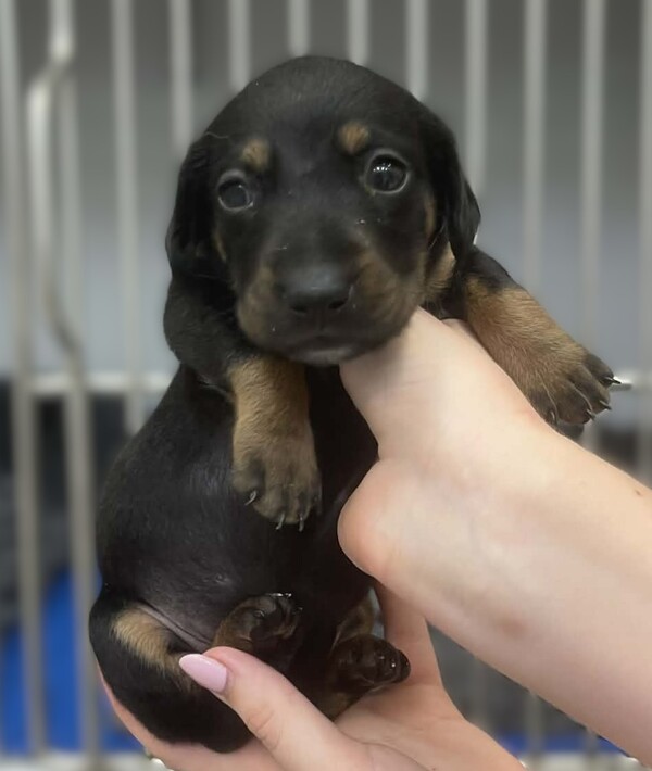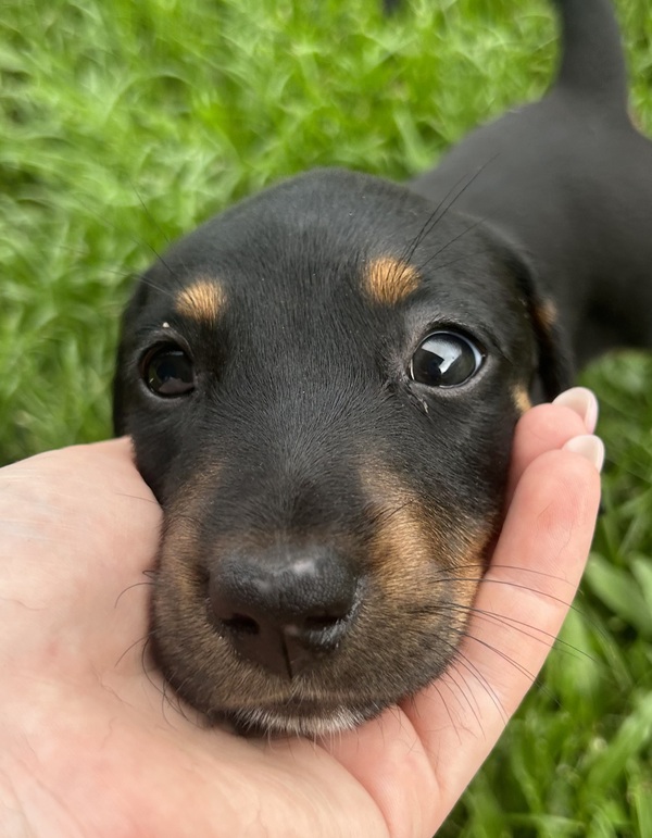 I'm a black and tan pup with soft eyes and a calm, thoughtful nature. I like to take things in, watch what's going on, and then decide if I'm ready to join the fun - and when I do, I'm all in.