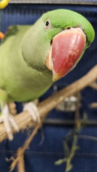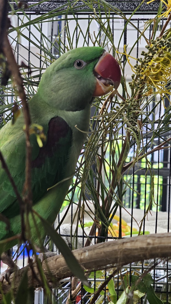 Like many Alexandrines, he'll thrive with patient, bird-savvy humans who understand big parakeet energy and can offer structure, enrichment, and respect for his boundaries. In return, you'll get a striking, intelligent companion with loads of character and charm.