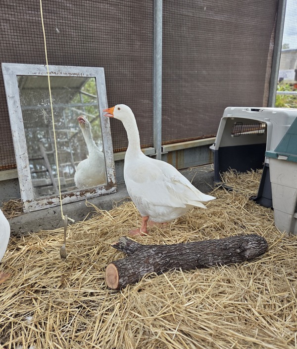 While their name is Cuddles, we aren't certain of their sex, so their new family should be happy to welcome this lovely goose regardless of whether they're male or female.