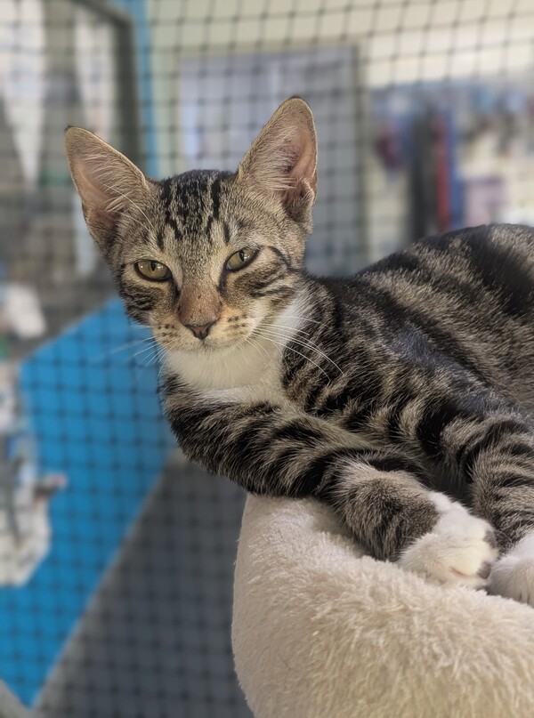 I came in to the RSPCA from the Pound. I can be a little shy at first but that doesn't last long. I am the sort of cat who will come up to you because I love attention. I am cat-social so if you already have a cat in the home and give us time to get to know each other, I will fit right in. Being only 5 months old, I am still really a kitten with playful energy, but at an adult cat price - what a bargain!