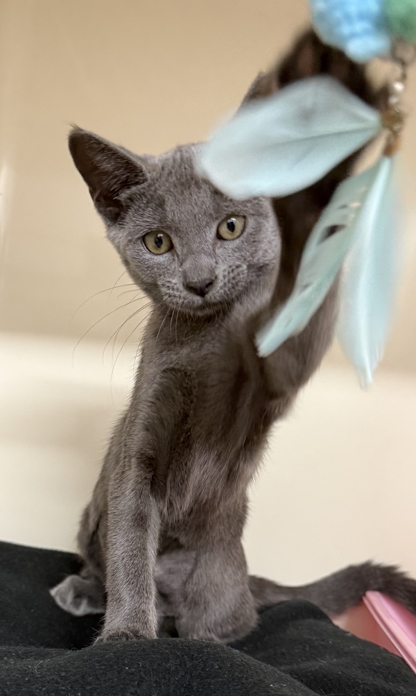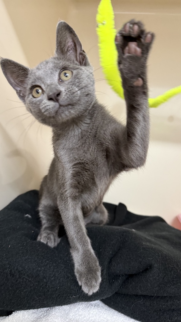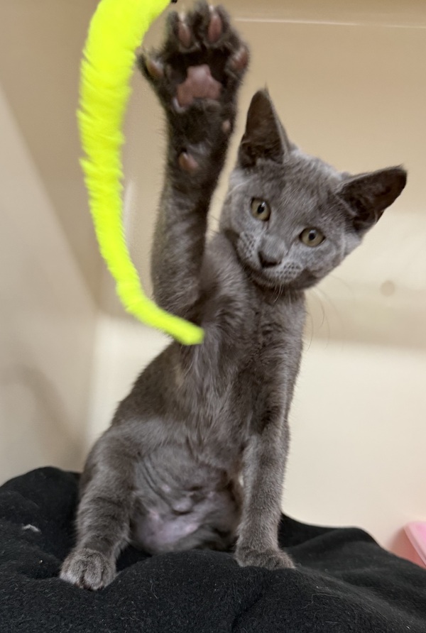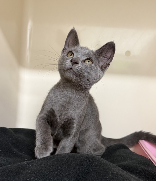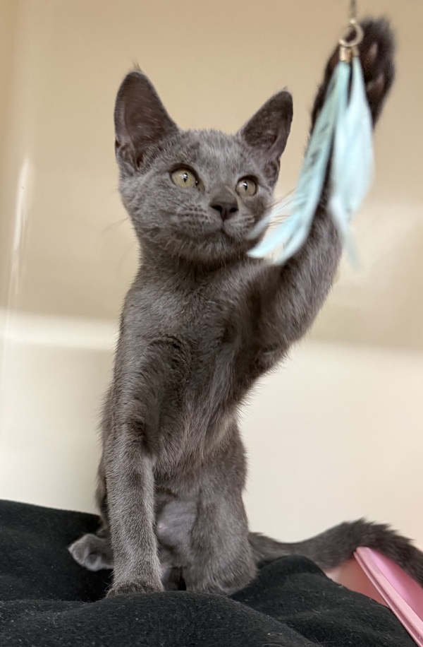Storm is a sweet, social kitten who may be a little timid when first entering a new environment and will benefit from a gentle, slow transition into his new home. It is recommended that he start off in a small, quiet area with access to food, water, litter, and comfortable hiding spots, while blocking off hard‑to‑reach areas and any potential escape gaps. Allowing Storm time to settle before gradually opening up the rest of the house will help prevent him from becoming overwhelmed by large open spaces. His environment should include plenty of enrichment such as scratch posts, cat trees, cardboard boxes or cat igloos, and access to both high and low resting spots like shelves or dressers to provide a variety of safe spaces throughout the home.