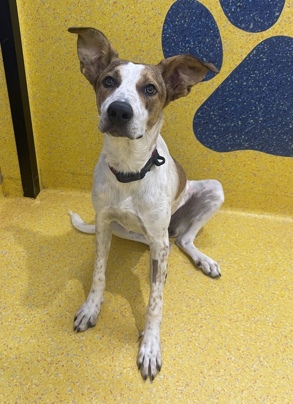 Kaylee is a whirlwind of affection and excitement. She lives for people-time and will happily soak up every pat, cuddle, and kind word she can get. She does get a bit jumpy and over‑excited when meeting new people or receiving attention, so ongoing 4 Paws skills and impulse control training will help her bring out her best manners.