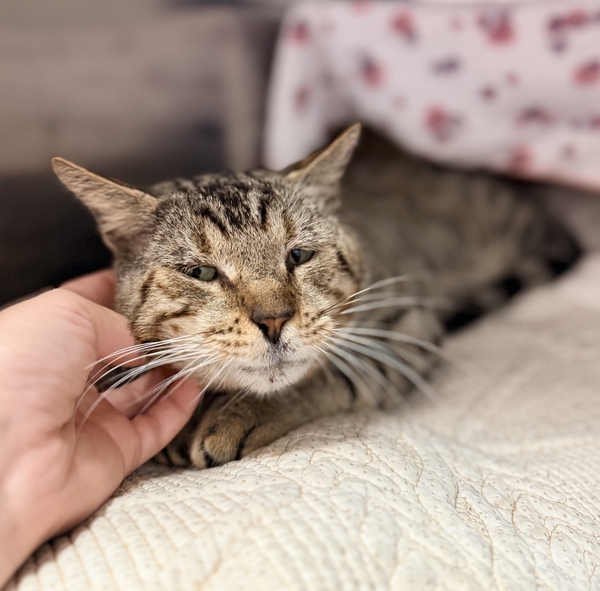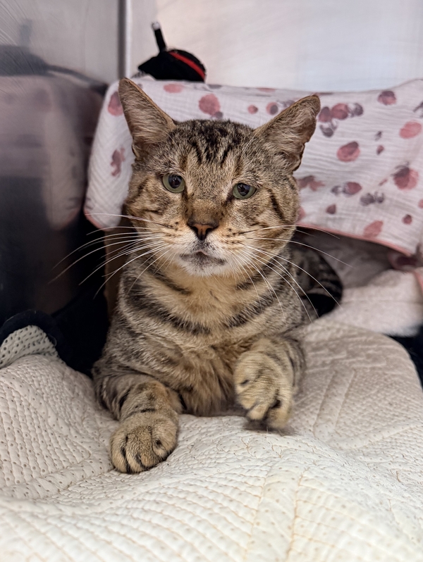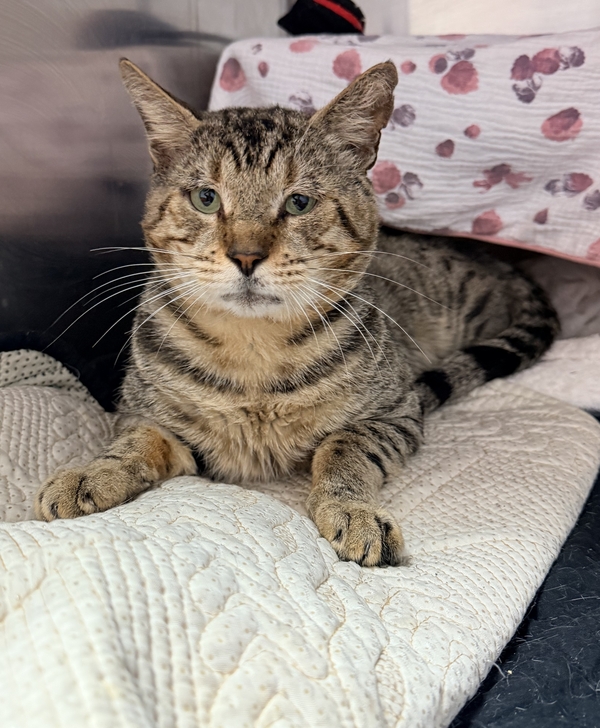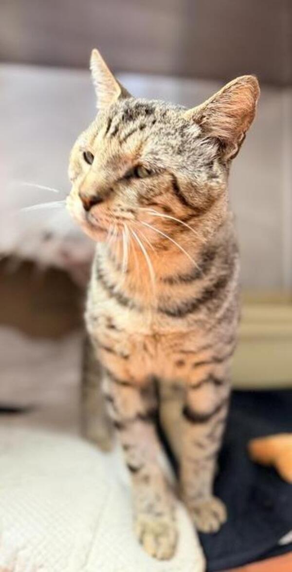 Meet Bruce Wayne, a charming 2-year-old brown tabby with a heart as big as his name! Bruce is playful, affectionate, and loves gentle attention-especially chin and cheek scratches. He enjoys exploring, batting at toys, lounging in sunny spots, and curling up in your lap for a cozy snuggle.