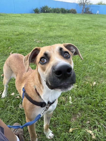 Bingle is a young, goofy boy with a sweet nature. He can be a little unsure around new people, dogs, and environments, and will do best in a calm home that can offer structure, routine, and patience.