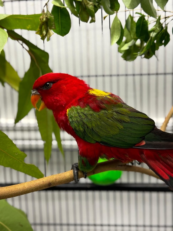 Meet Mushu, a vibrant and spirited chattering lory.