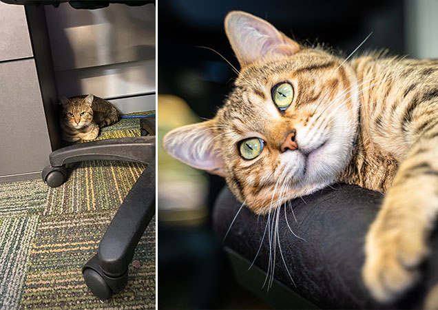A shy cat will display eyes wide open, their movements slow and their body close to the ground. If you notice this, that’s the best time to just watch from a distance and try not to interact with them until they are ready and approach you.